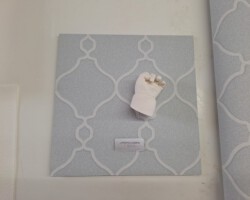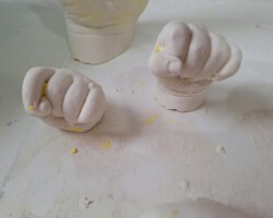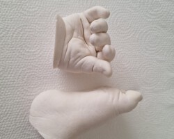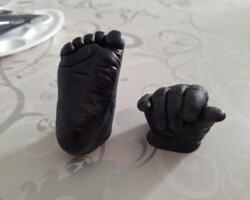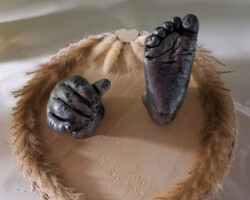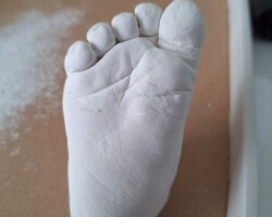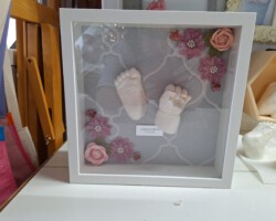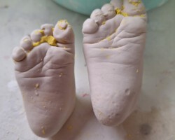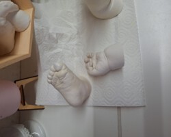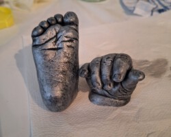 Den Abdruk dieses kleinen Jungen durfte ich im Kurs anfertigen. Die Bearbeitung und Gestaltung habe ich zu Hause gefertigt. Der Name und das Jahr soll in das Holz eingebrannt werden. Dafür muss ich allerdings noch ein paar Tests anfertigen, bevor ich an dieses schöne Modell gehe.